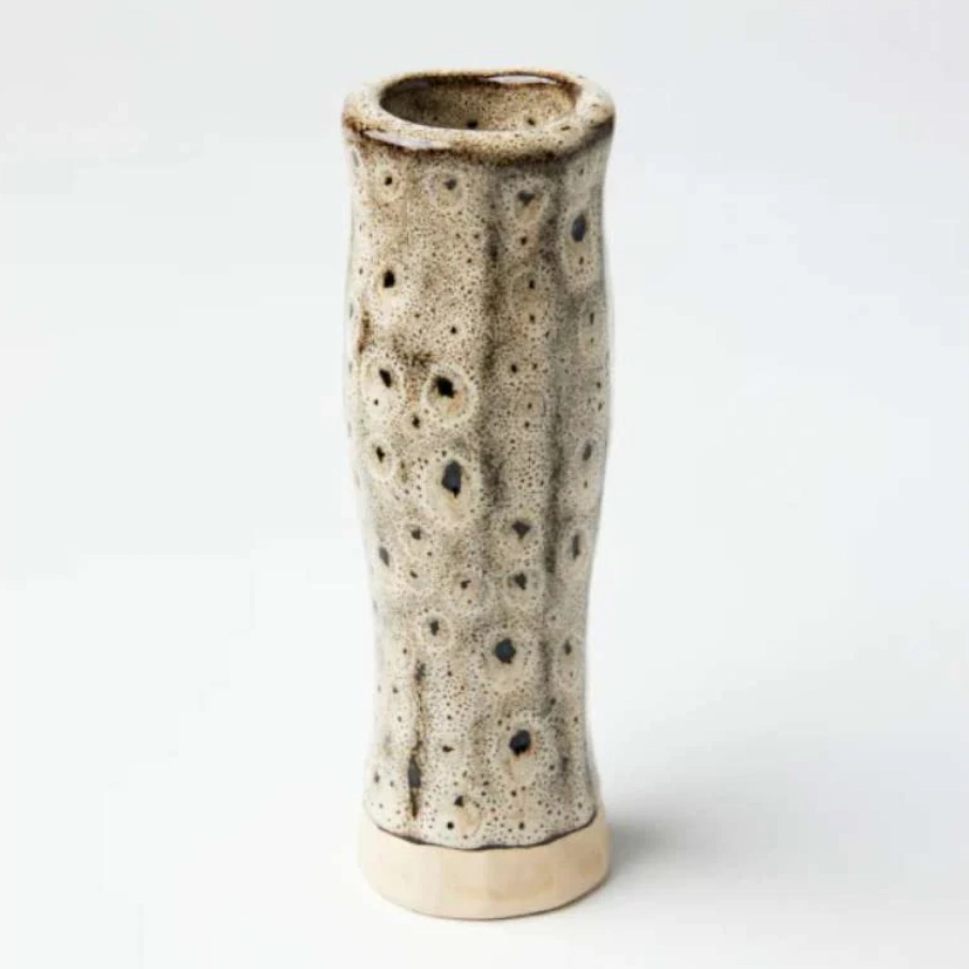 The Bijou Point Wall Vase from Jones & Co has been handcrafted with care. Each vase has been coated in a raw reactive glaze giving them a rich and textured appearance. The natural tones creates a warm and inviting atmosphere in any space.