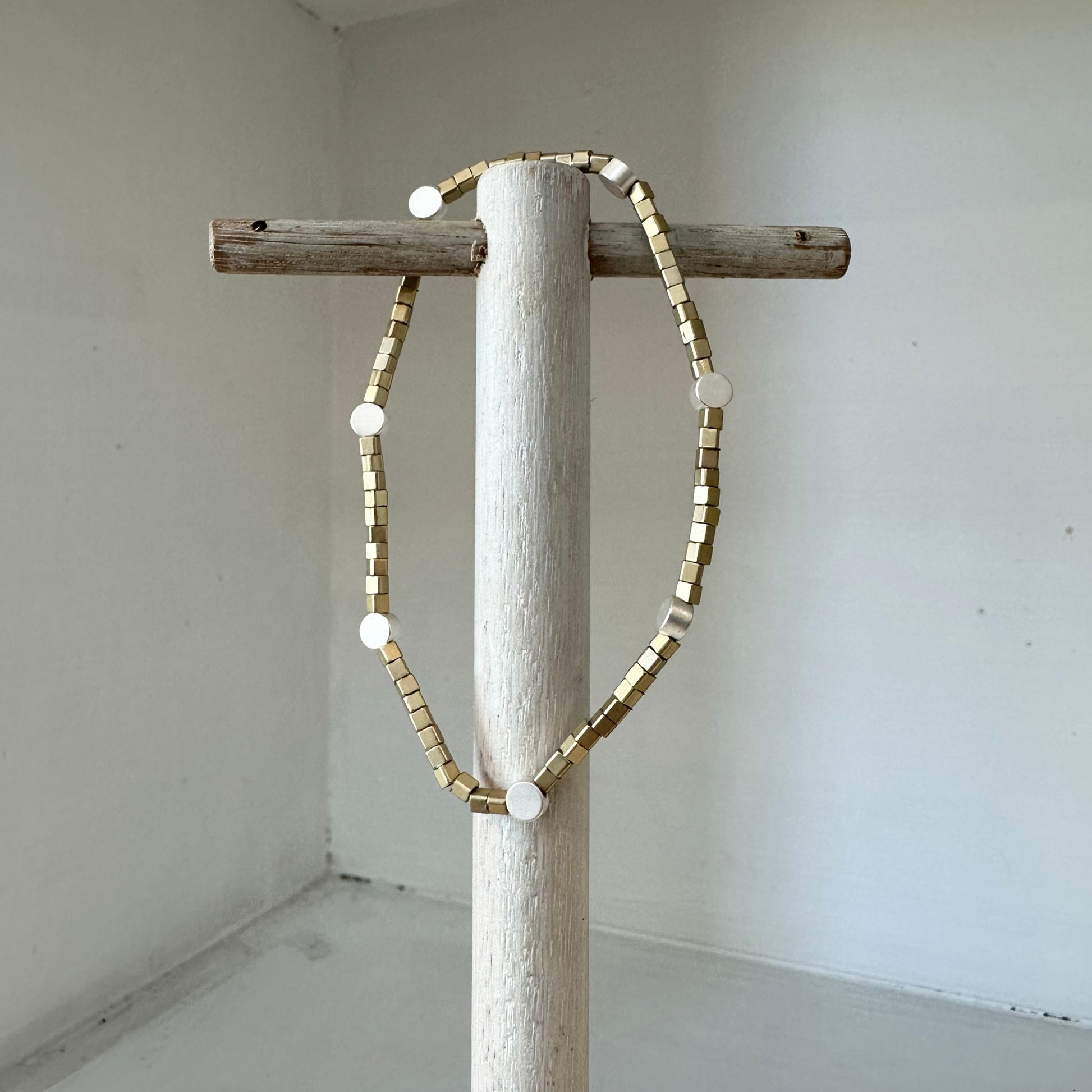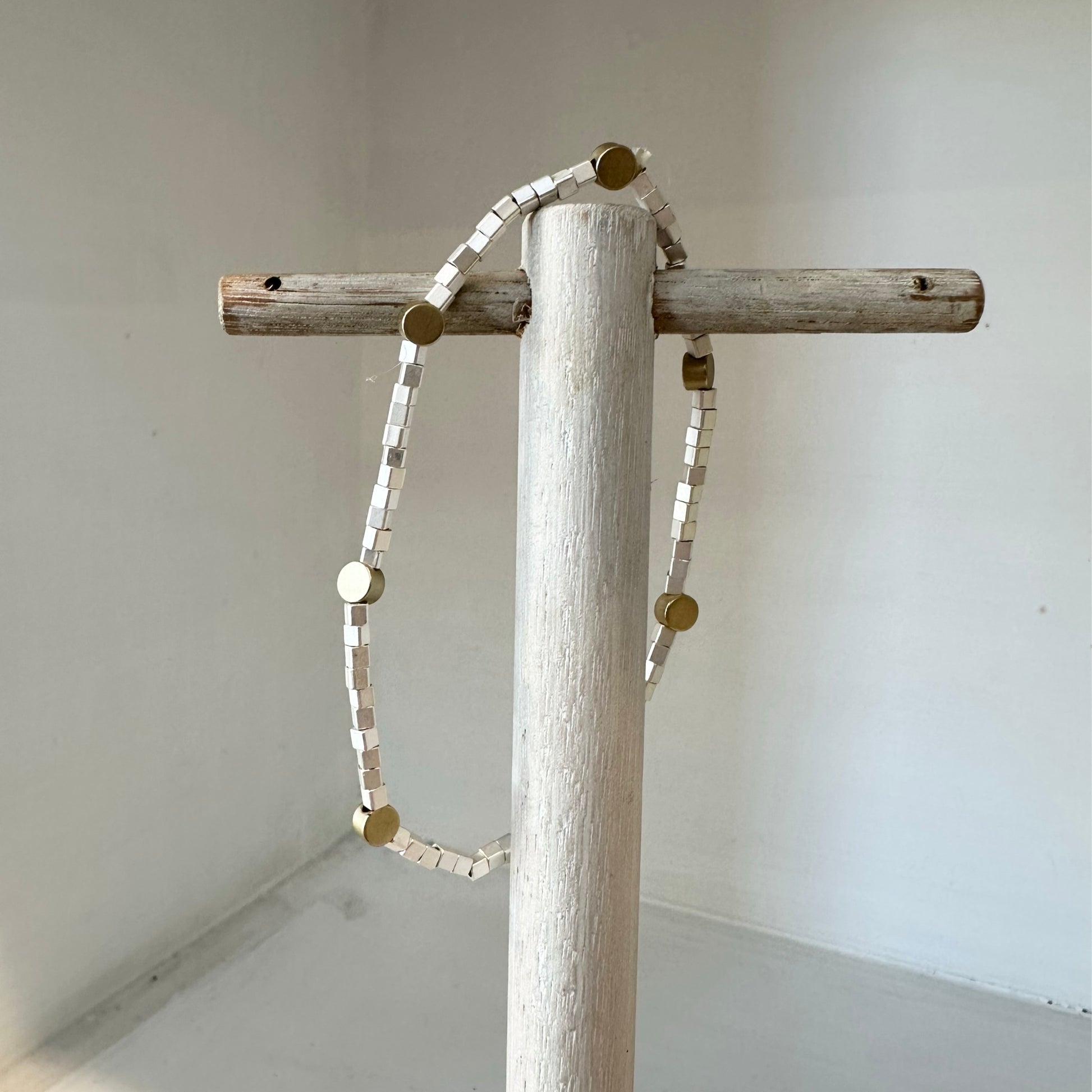 Silver Dot and Gold Find Square Bead Bracelet