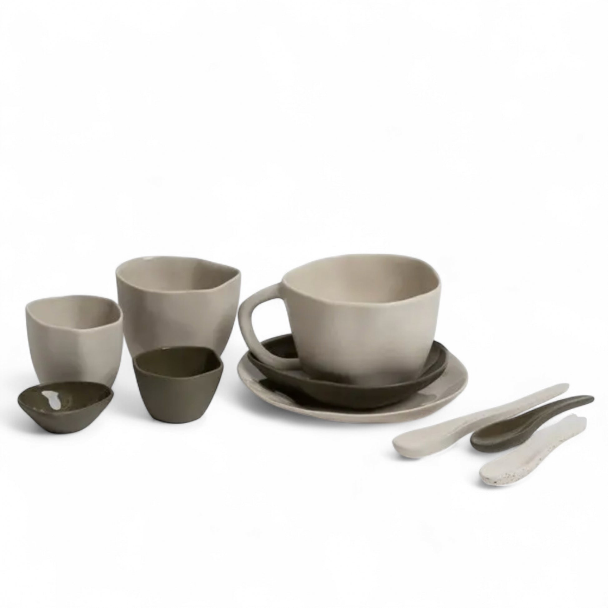 The Haan range is made of stoneware (internally glazed) baked at 1220-1250oC making them durable.