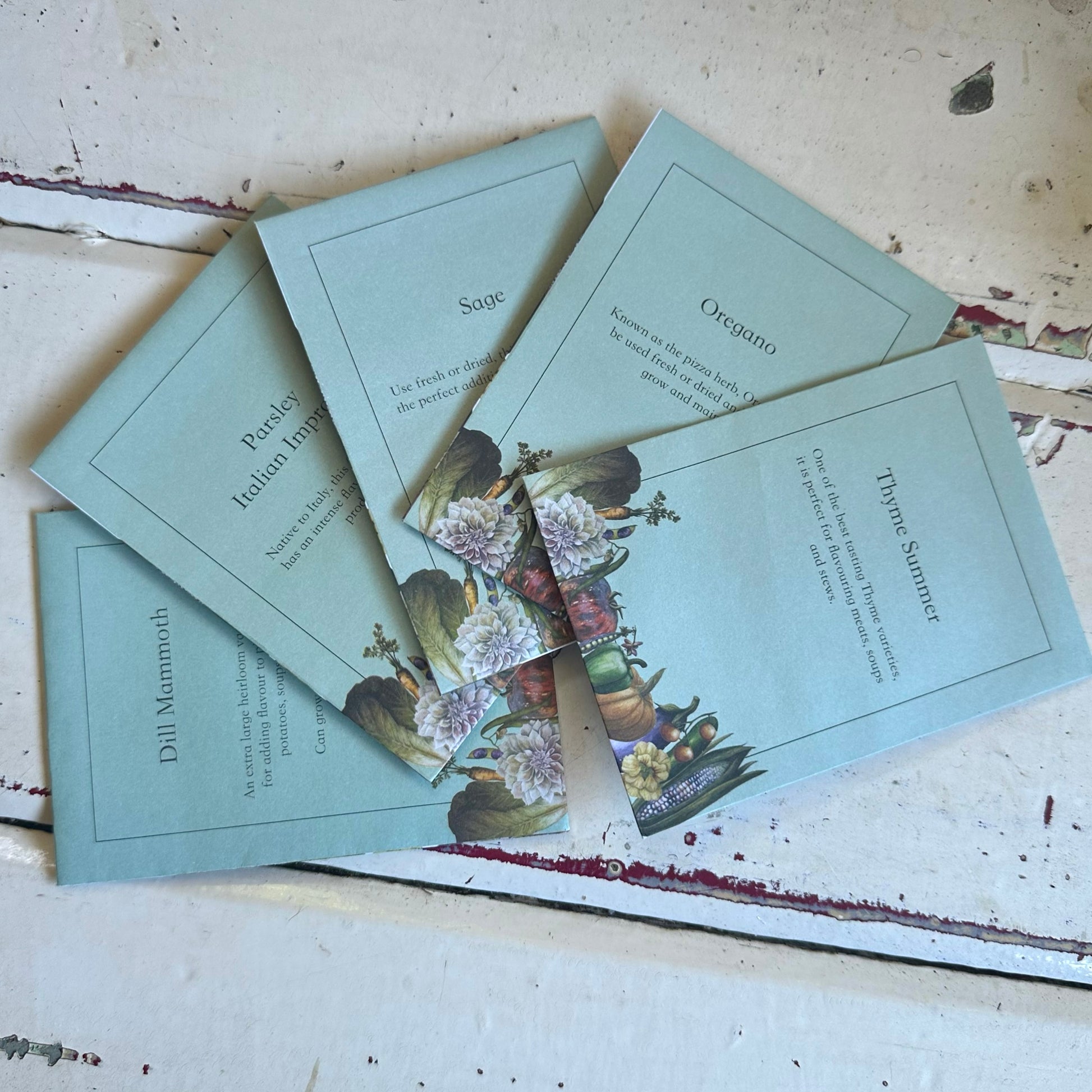 Grow you own Herb Garden with this FIVE x seed packet bundle. Included are Dill, Italian Parsley, Sage, Oregano and Thyme. It comes in a drawstring bag to make the perfect gift!