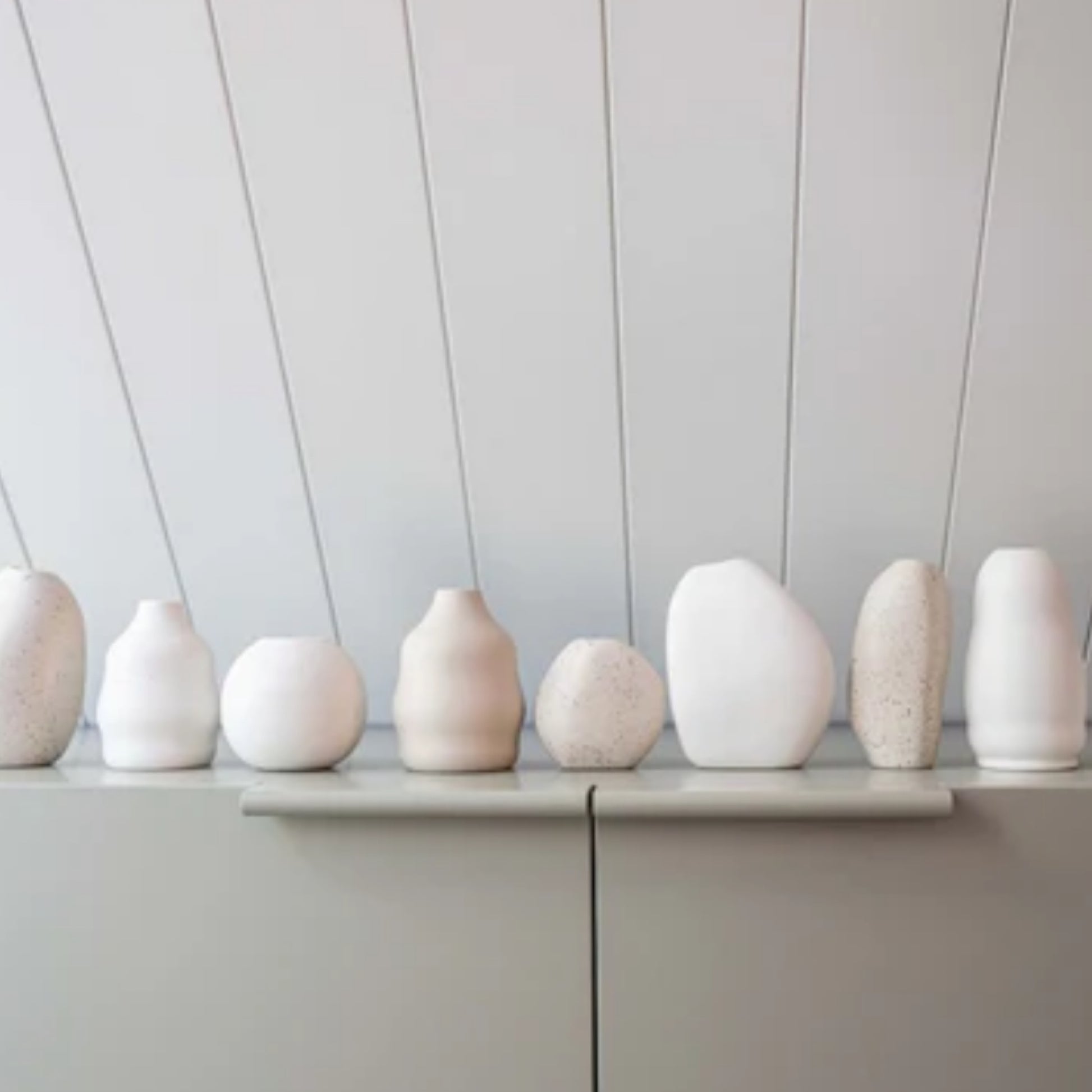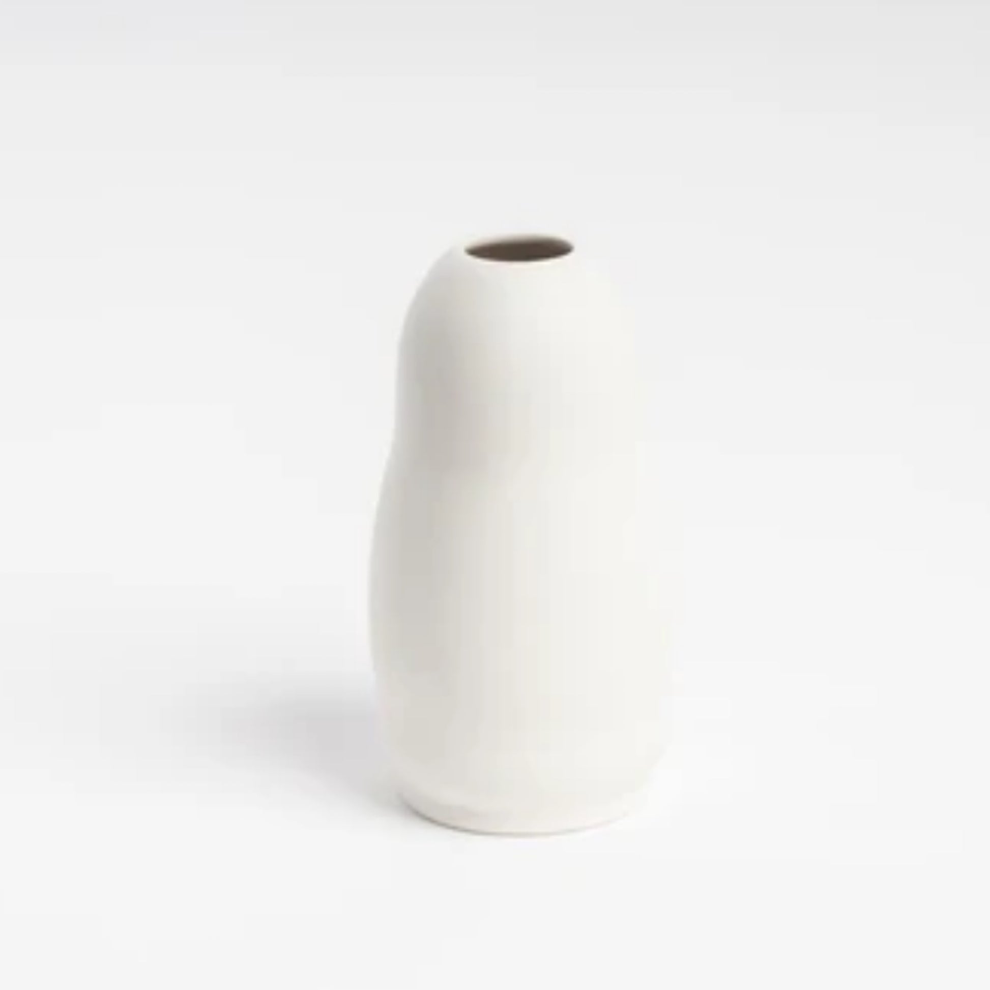 The Leo Harmie Vase from NED Collections is inspired by Vietnamese artisans. The vase has a hand crafted feel, moulded into a seed like shape. The Leo Harmie Vase is available in white only.