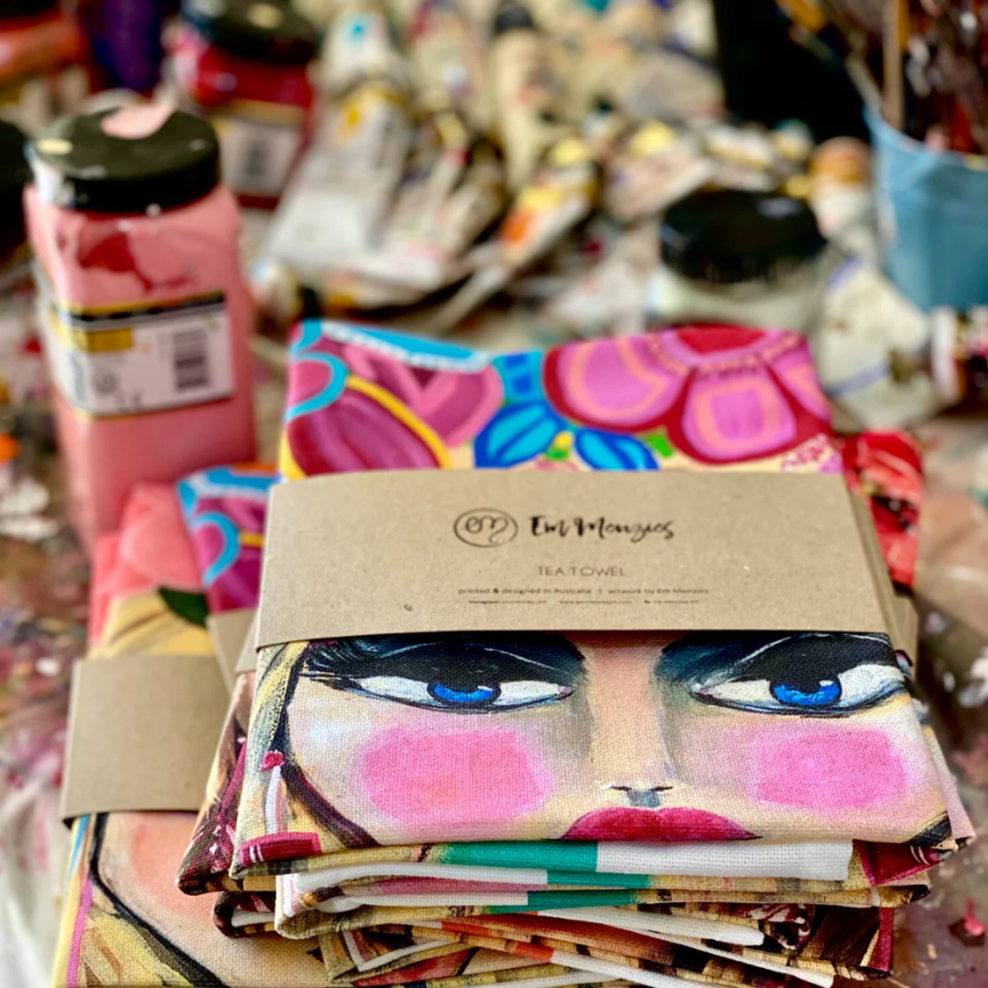 This gorgeous tea towel, printed from the original artwork of Em Menzies has many uses. You could frame it as a vibrant artwork for your wall, hang it on your oven to brighten your kitchen or use it as a regular tea towel.