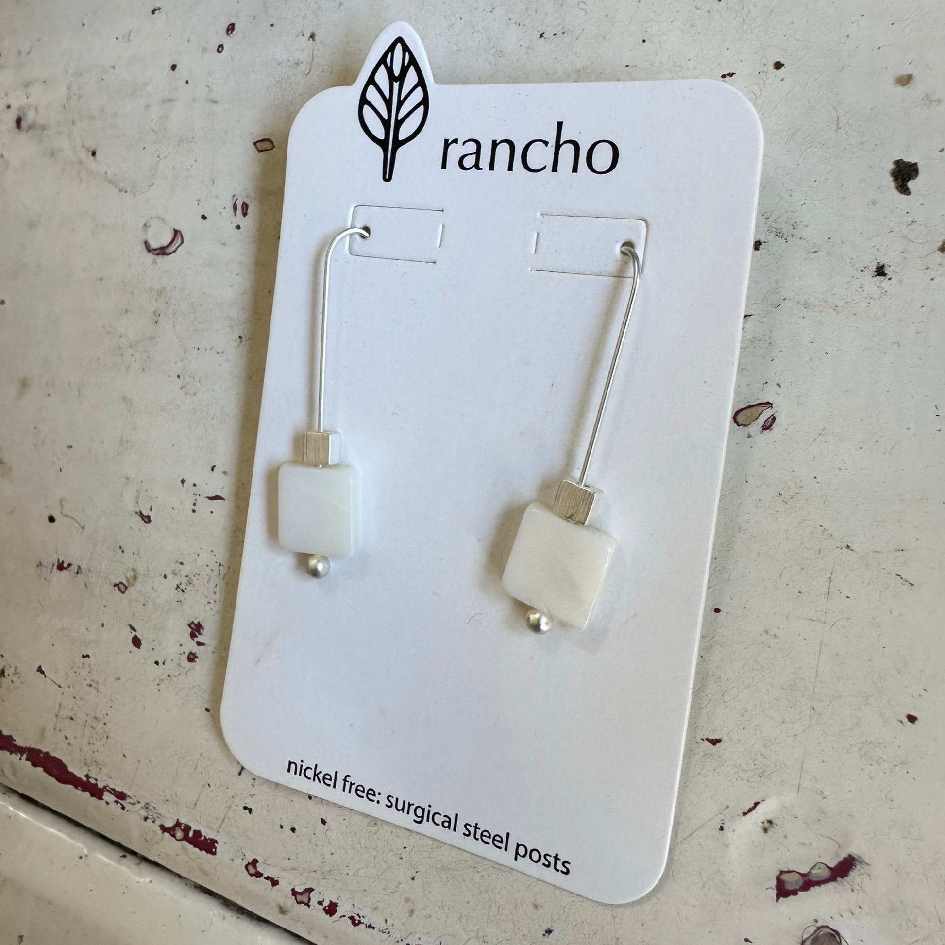 Our Mother of Pearl Square Bead on Medium Hook Earrings from Rancho are beautiful.