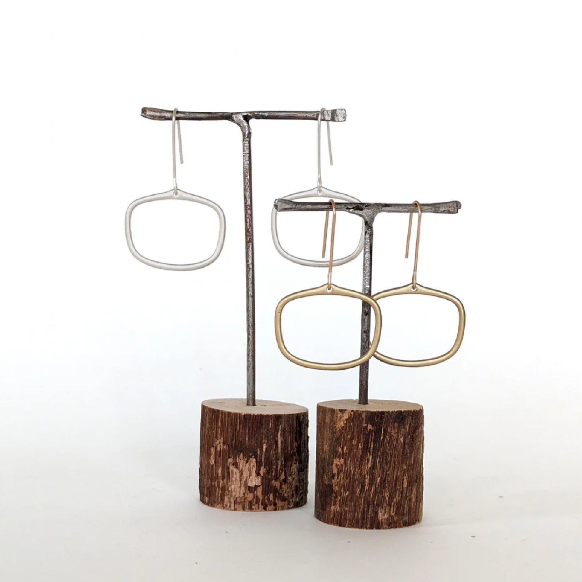 The ring and hooks are cast in brass (not nickel) and plated in either matte Silver or matte Gold. All plating is 0.5 - 1.0 micron thick.