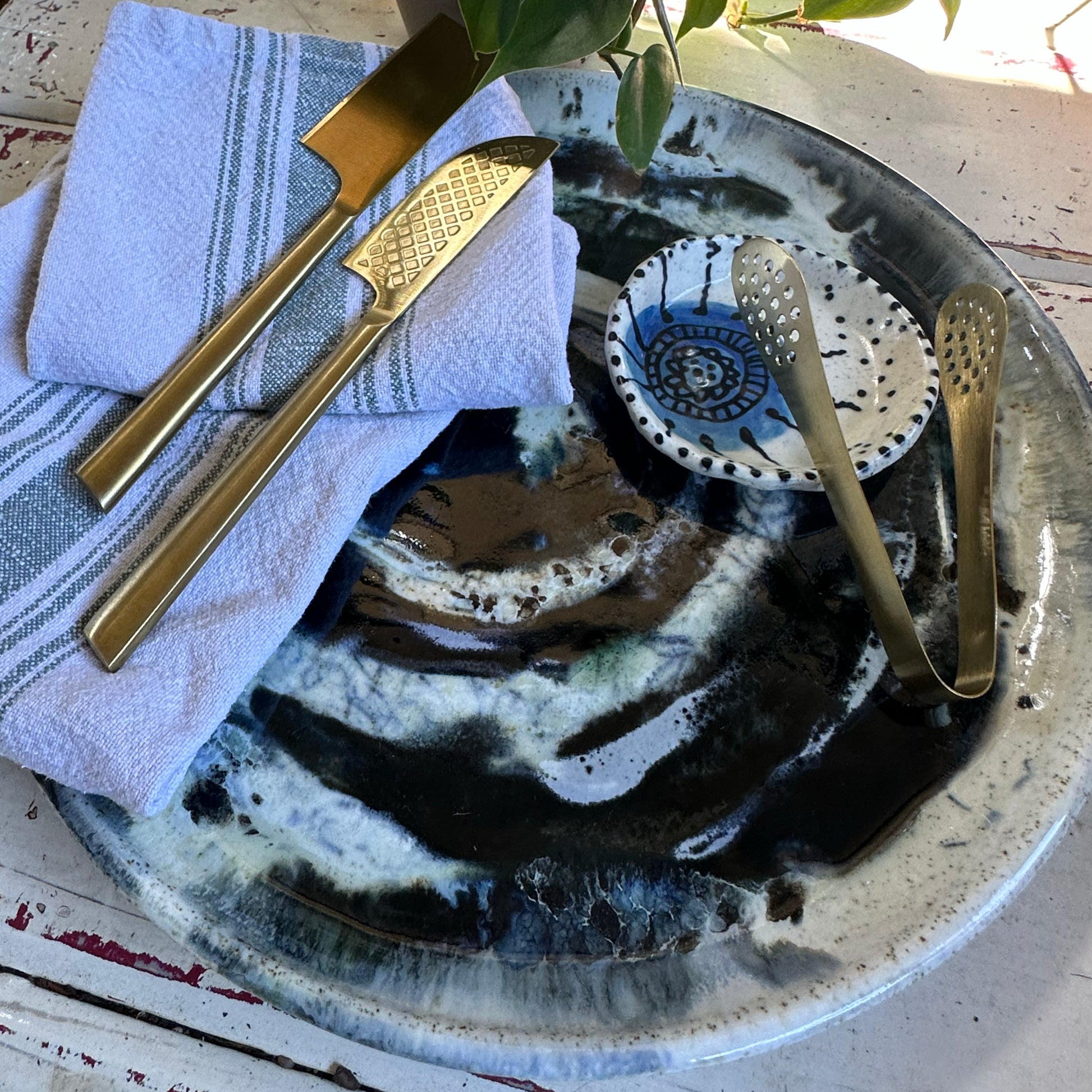 Elevate your entertaining, or simply have on display, with this stunning handcrafted stoneware platter by Brisbane based artist Petra Koehn-Meme. This piece has been hand-painted in a range of botanicals in blue and glazed (for food safety).