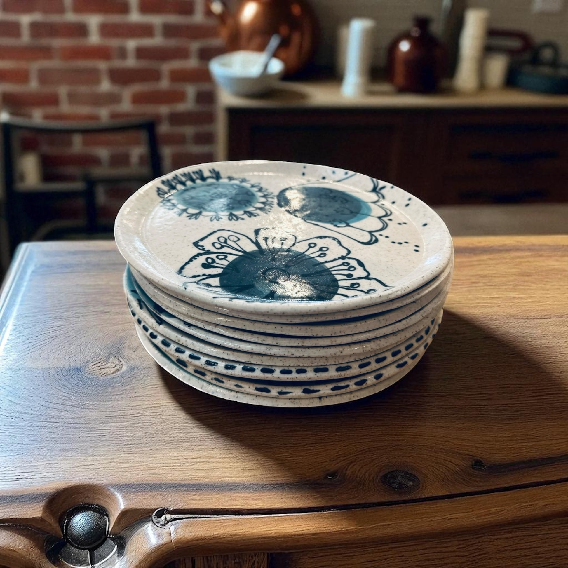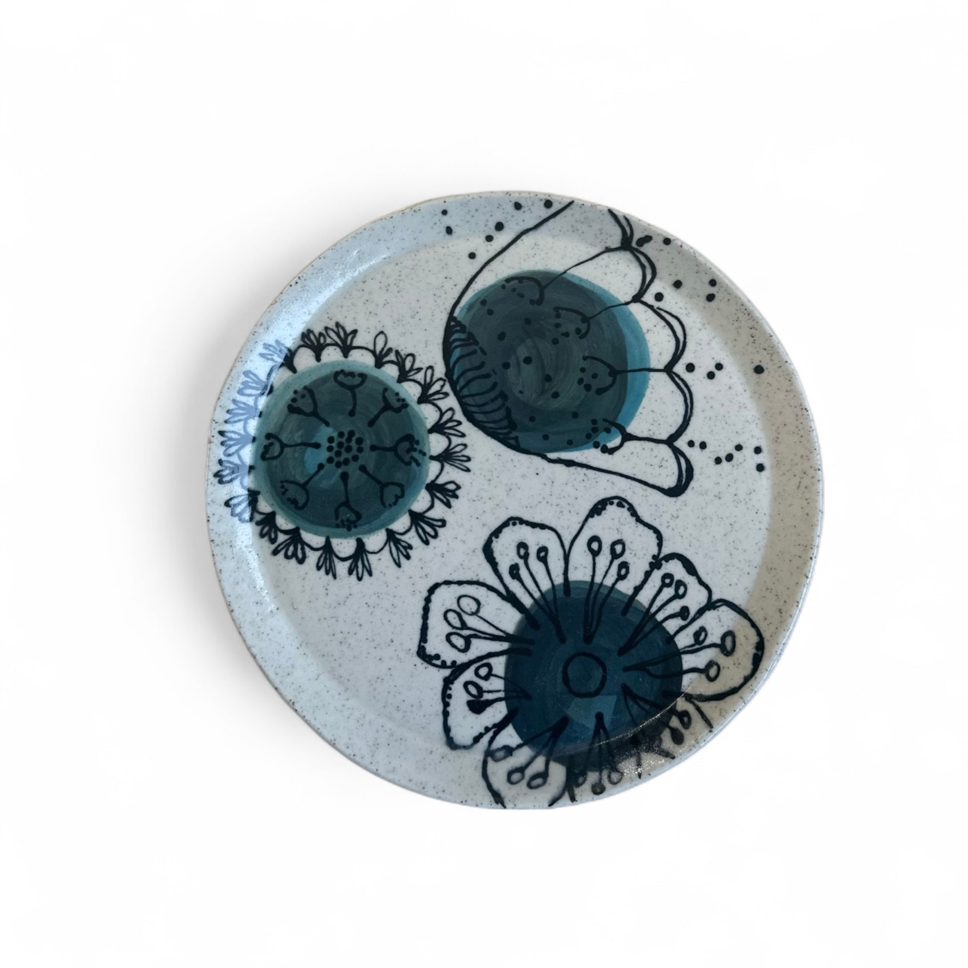 Elevate your dining experience, or simply have on display, with our stunning collection of handcrafted stoneware plates by Brisbane based artist Petra Koehn-Meme. Each has been hand-painted in a range of botanicals in blue tones on a natural speckled base.