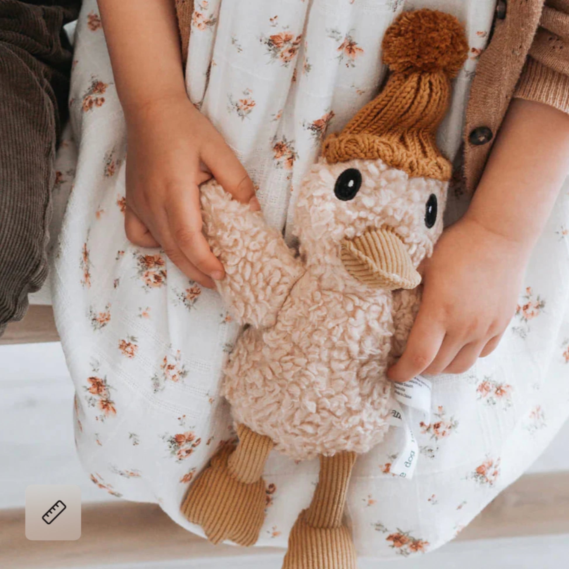 Petunia Duck is made with love using the the softest 100% cotton plush fabric. Her beanie is hand knitted using Australian merino wool.