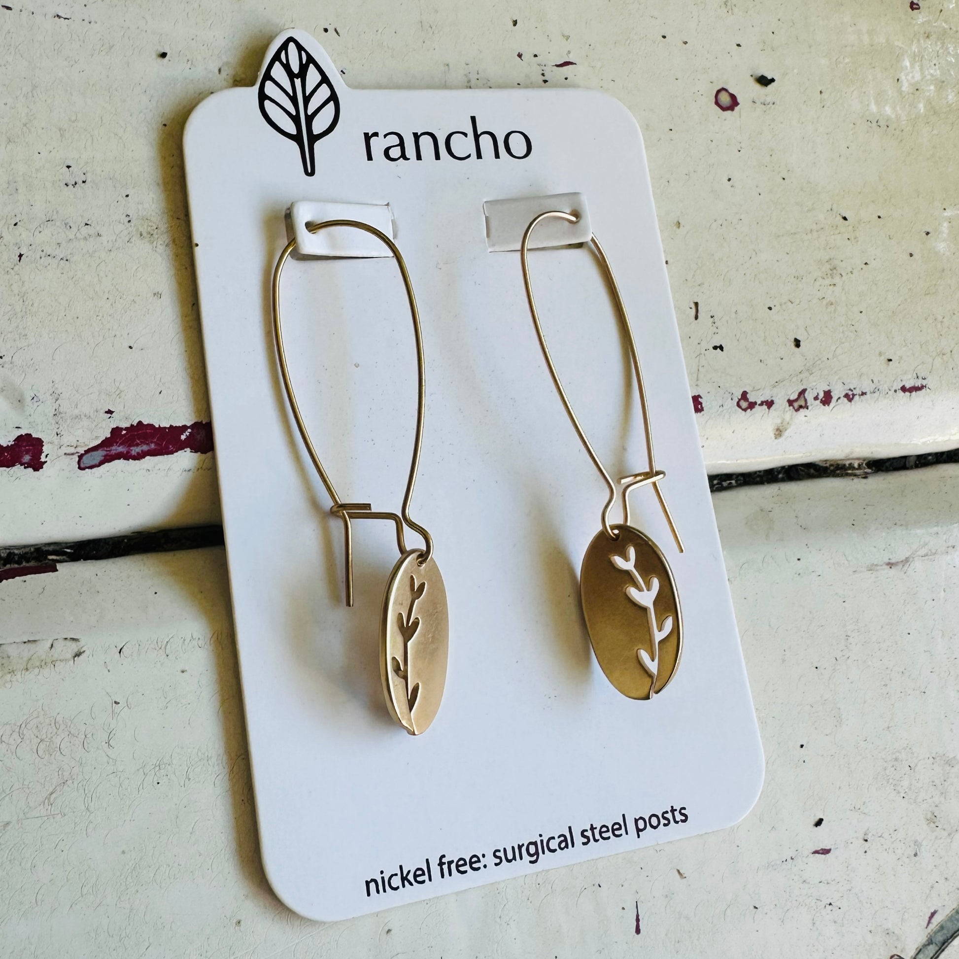 The Seedling Oval Catch Back Hook Earrings from Rancho are stunning.