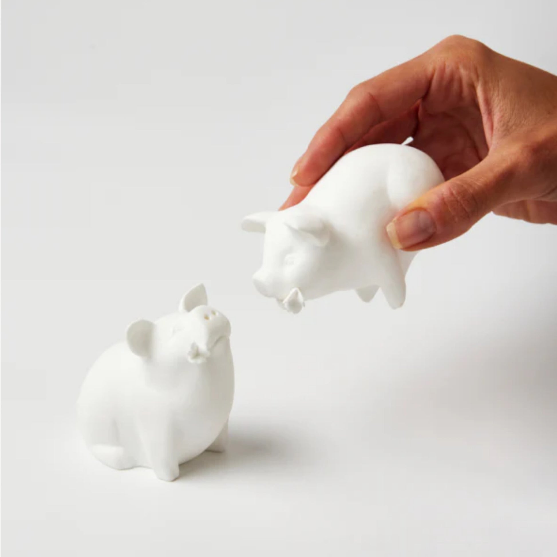 Our white bone china pig salt and pepper shakers will bring a playful and whimsical touch to your dining table.